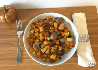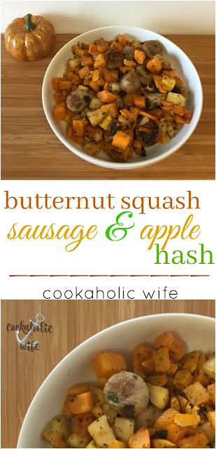To make this recipe easier, pick up the already peeled and diced butternut squash from the grocery store. The chicken sausage I used was the Al Fresco brand in Sweet Italian. You could also use their apple chicken sausage to really play up the apple flavor in this dish.