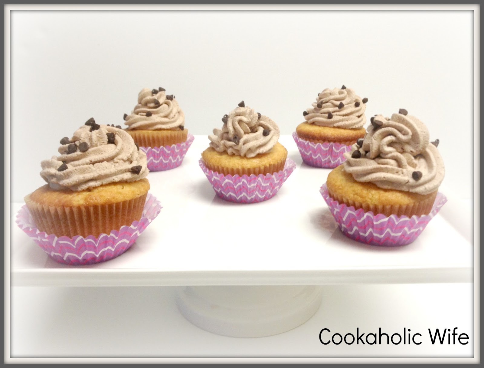 11. Transfer to a large piping bag with a large star tip and pipe the frosting onto the cupcakes. Sprinkle the mini chocolate chips over each cupcake. Refrigerate until ready to serve.