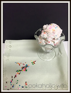 Anyway, I've learned that Farrah and I share the ability to consume large quantities of sushi in one sitting, can entirely lose track of how many Reeses Pieces have been popped into our mouths and also have a thing for cake batter flavor. Which is what lead me to this recipe today.