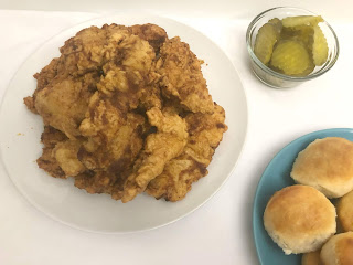 I figured it would either be great or terrible but I was willing to take the chance. It was surprisingly good! That recipe came with the chicken cut into strips and I decided I wanted to find a similar recipe to share with you for this blogging event because I'm not very good at frying whole pieces of chicken.