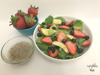 There are so many options for salads and so many different ingredients to include. For this event, I decided to go with a simple fruit and veggie salad. The strawberries were so sweet on their own they hardly needed the dressing and honestly, there isn't much better than fresh slices of avocado.