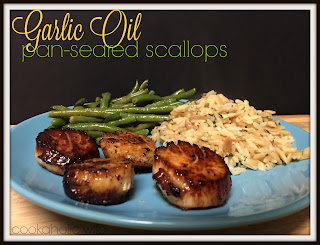 5. Add 2 tablespoons of the garlic infused oil to a large skillet over medium heat. Add in the scallops and cook for 2-4 minutes on each side or until nicely caramelized. Avoid picking up the scallops as they are cooking or they will never get browned. Flip over and cook for 1-2 minutes on the other side.
