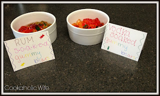 I feel as though I'm cheating a bit with choosing this to make for the Secret Recipe Club. There really isn't a recipe for this and actually, I don't think you could find something easier to do. But, I love gummy bears, I had some half used tiny liquor bottles in the fridge, and we were having a party.