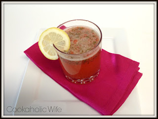 Tom thought this would be completely gross because of the basil and refused to even try it. I don't think the basil came through very strongly at all. Also, if you are not a fan of pulp in orange juice, I don't think this recipe will be for you as I was left with quite a bit of pureed strawberry mixture in my glass each time, as you can see from the picture.