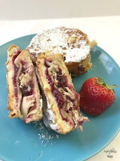Let's start with a monte cristo sandwich, which is which is traditionally a ham, turkey and swiss cheese sandwich, dipped in an egg/milk batter and pan fried to golden perfection. It's served with a berry jam.